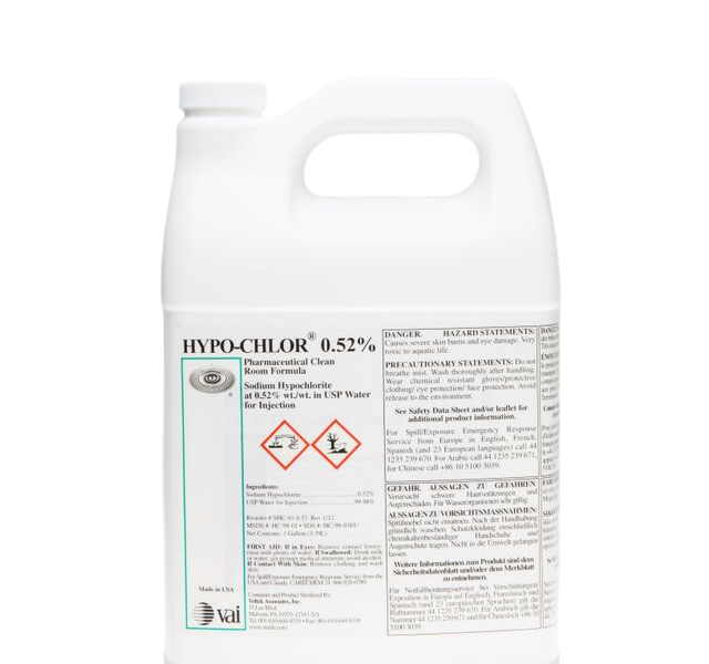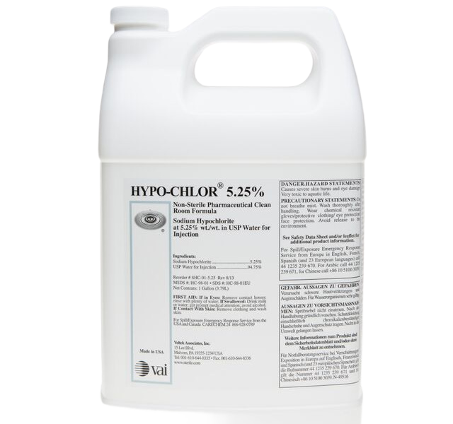 VAI manufactures sodium hypochlorite solutions used for disinfectants and sanitizers in clean rooms and controlled areas including those used in health care institutions, biopharmaceutical, medical device and diagnostic manufacturing facilities. HYPO-CHLOR® Products were developed for use in cleaning rotation cycles for maintaining a clean environment. All dilutions are an EPA registered hard surface disinfectant for use in clean rooms and controlled areas.
