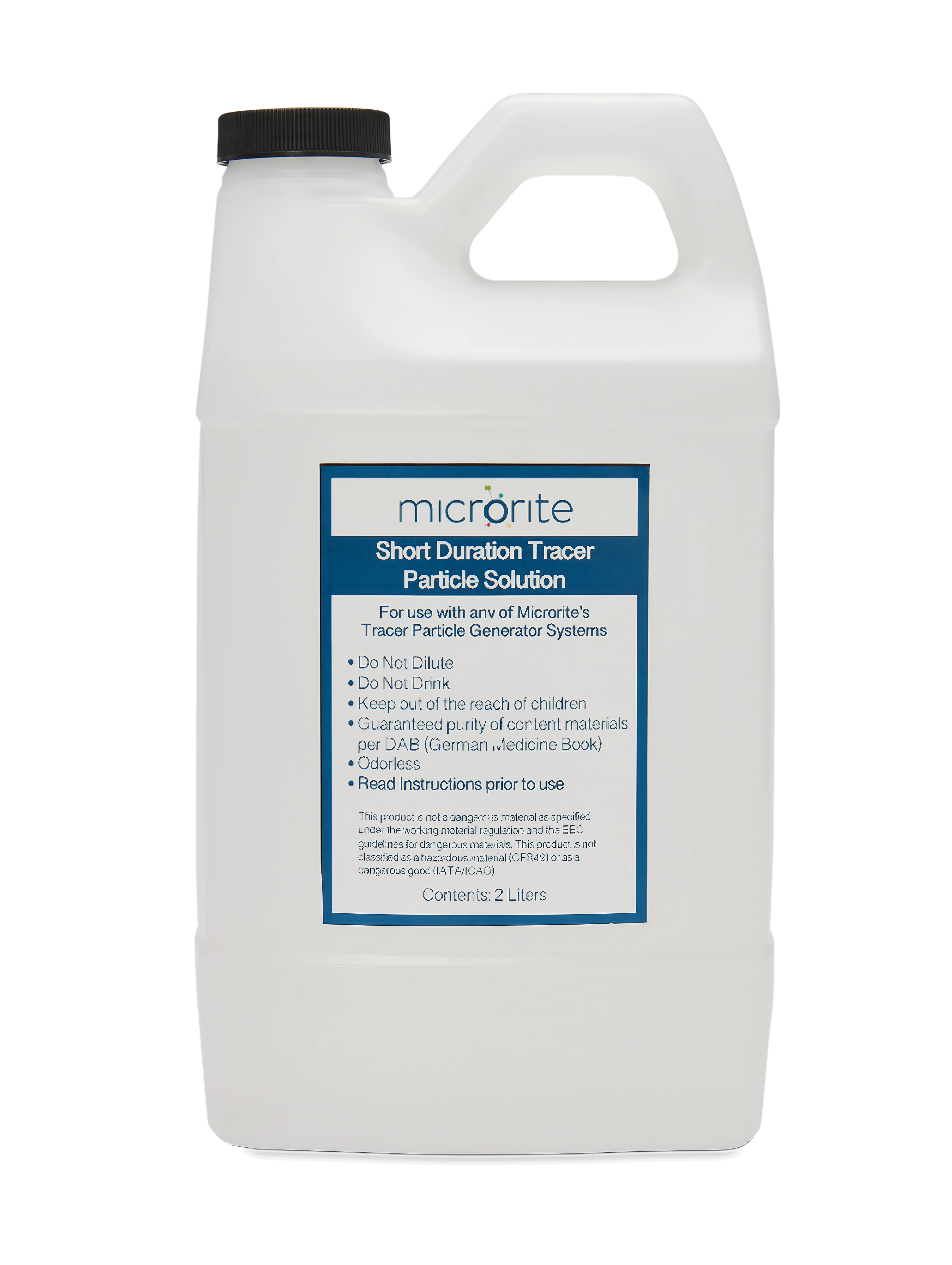 - The Short Duration Tracer Particle Solution is formulated for low volume clean environments such as Isolators, RABS, mini-environments, Biological Safety Cabinets, Flow Benches and areas with unidirectional airflow. Short Duration Fluid should not be used for Recovery Studies.